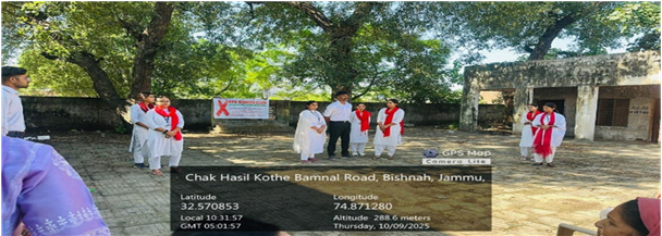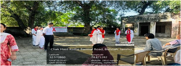 The Red Ribbon Club of Government Degree College, Bishnah, organized a Nukkad Natak on HIV/AIDS on 9th October 2025 in the adopted village Ratnal, Bishnah, under the patronage of the Principal, Dr. Shallu Samyal. The event formed an integral part of the Red Ribbon Club’s annual activities aimed at promoting awareness about health, hygiene, and the prevention of life-threatening diseases such as HIV/AIDS among the community. The programme sought to sensitize rural residents about the causes, transmission, and preventive measures of HIV/AIDS while addressing the widespread misconceptions and stigma associated with the disease. The Sarpanch of Ratnal village extended full cooperation and arranged for the gathering of villagers at the Panchayat Ghar, where the students presented the Nukkad Natak with great enthusiasm and social commitment. Through powerful dialogue, emotional expression, and realistic portrayal, the students successfully conveyed the message of compassion, inclusion, and awareness. The Nukkad Natak emphasized that HIV/AIDS is a health condition that demands care, understanding, and medical attention rather than discrimination or fear. The performance also encouraged the youth to act as ambassadors of awareness in their surroundings. The event was efficiently coordinated by Dr. Anshu Sawhney and Dr. Ashma Gupta, Nodal Officers of the Red Ribbon Club, along with Dr. Geeta Lakhotra, NSS Programme Officer. The combined efforts of the Red Ribbon Club, NSS volunteers, and faculty members made the programme a resounding success. The activity was well received by the local residents, who appreciated the students’ efforts in spreading such an important and socially relevant message. Overall, the Nukkad Natak served as an effective platform for community engagement, helping bridge the gap between awareness and action and reinforcing the college’s commitment to social outreach and public health education.
