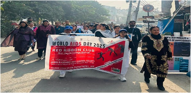 Senior faculty member Dr. Anju Bala appraised the efforts of both students and performers, appreciating their contribution to spreading awareness. She emphasized the importance of youth involvement in public health initiativesand commended the collaborative efforts of JK AIDS Control Society, Savraj Production, the Red Ribbon Club, and the Anti-Drug Club in organizing this meaningful event.